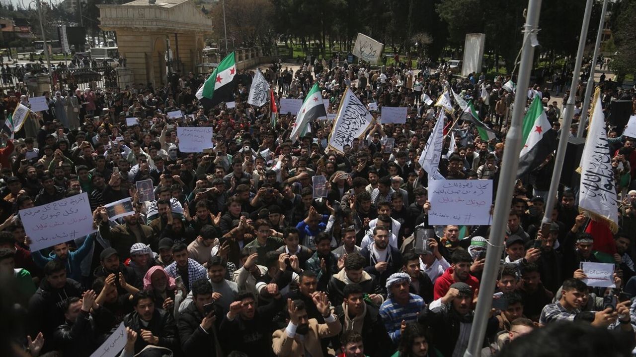 Birleşmiş Milletler Mülteciler Yüksek Komiserliği (UNHCR) binası ile Halep Üniversitesi önünde bir araya gelen protestocular, Arapça, İbranice ve İngilizce pankartlar taşıyarak, yasanın iptal edilmesini ve İsrail'in Filistinli sivillere yönelik ihlallerinin sona erdirilmesini talep etti.