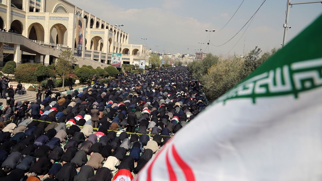 Binlerce İranlının katıldığı namazda ABD, İsrail ve İngiltere aleyhine sloganlar atılırken hutbede, 'Hamaney'in intikamının alınacağı' mesajı verildi.