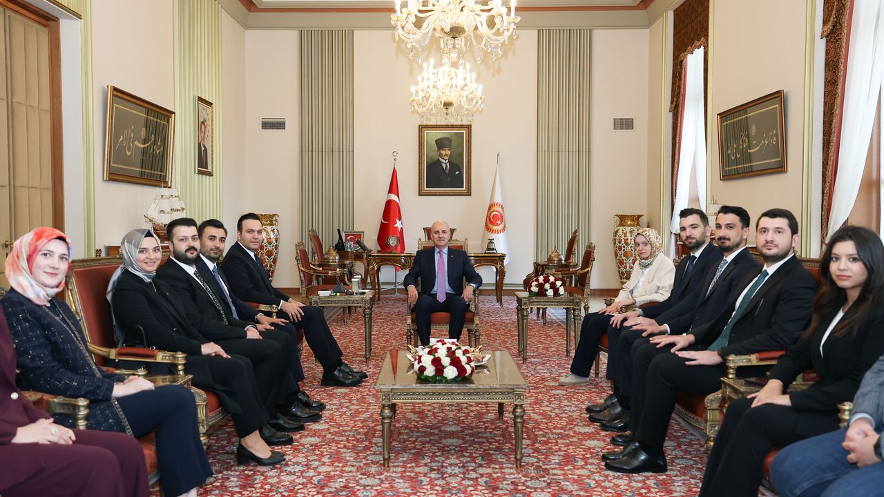 TBMM (AA) - TBMM Başkanı Numan Kurtulmuş, AK Parti Gençlik Kolları Başkanı Yusuf İbiş ve beraberindeki MYK üyelerini kabul etti.