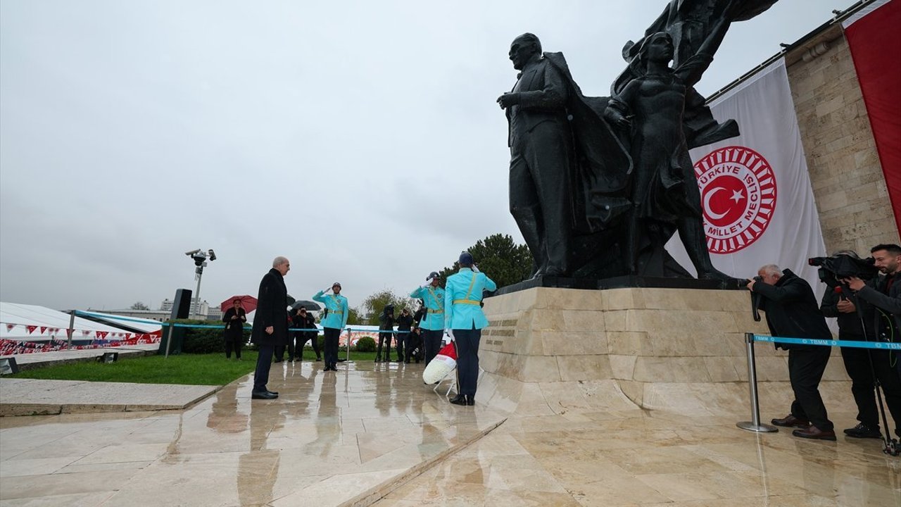 TBMM Başkanı Numan Kurtulmuş'un, Atatürk Anıtı'na kırmızı ve beyaz karanfillerden oluşan çelenk bırakmasının ardından saygı duruşunda bulunuldu, İstiklal Marşı okundu.