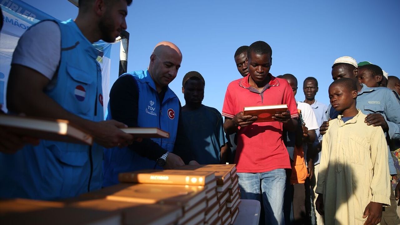 TETE (AA) - Diyanet İşleri Başkanlığı ve Türkiye Diyanet Vakfının (TDV) "Hediyem Kur'an Olsun" Projesi kapsamında Güneydoğu Afrika ülkesi Mozambik'in Tete eyaletindeki halka Kur'an-ı Kerim dağıtıldı.