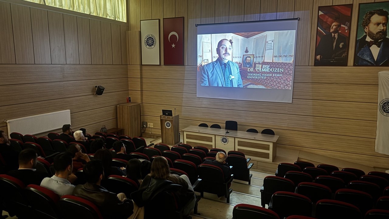 Tekirdağ Namık Kemal Üniversitesi Fen-Edebiyat Fakültesi Konferans Salonu'nda gerçekleştirilen gösterimde, ünlü şair ve yazar Namık Kemal'in hayatı ve eserleri dijital ortamda yeniden canlandırıldı.