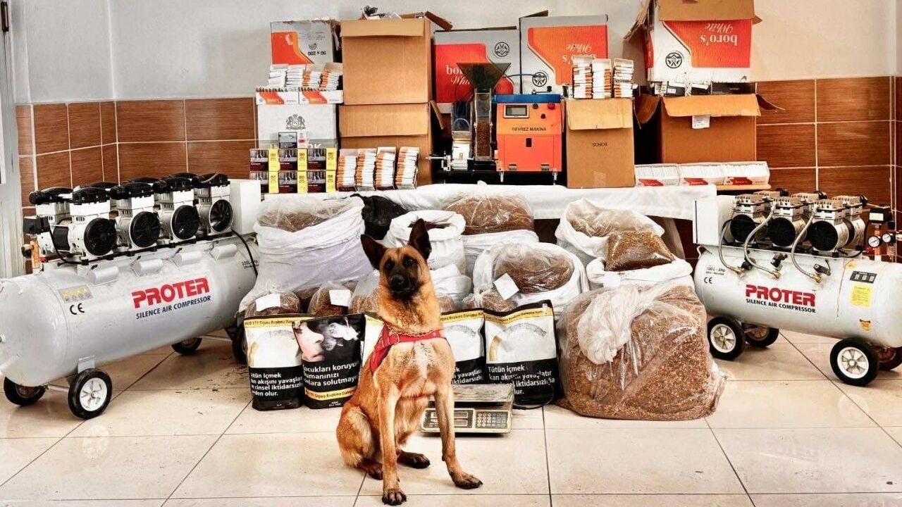 Ekipler, ilçe merkezindeki bir iş yerinde yaptıkları aramada, 238,7 kilogram kıyılmış tütün, 105 bin 716 dolu makaron, 46 bin 200 boş makaron, 595 gram nargile tütünü, 45 bin tütün sarma kağıdı, 5 kaçak telefon, 7 fişek ele geçirdi.