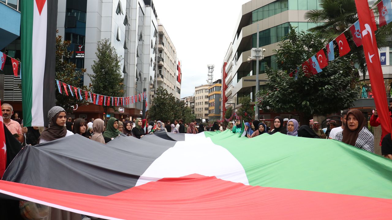 TRABZON (AA) - Trabzon'un Ortahisar ilçesinde Filistin'e destek için yürüyüş gerçekleştirildi.