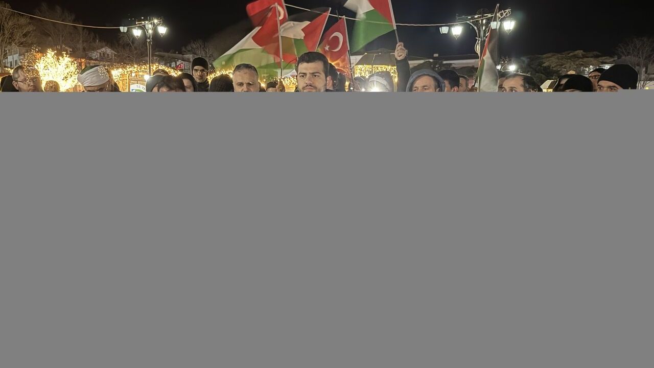 Mustafa Kemal Atatürk Meydanı'nda Türk ve Filistin bayraklarıyla bir araya gelen vatandaşlar, İsrail aleyhine slogan attı.