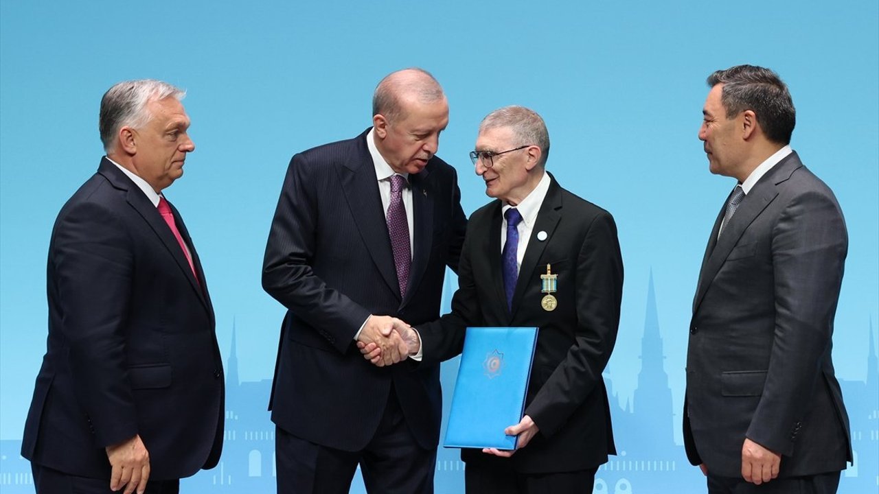 Erdoğan ile Orban, Türk dünyasında bilimsel çalışmalara üstün katkılarından dolayı ödül alan Sancar'ı tebrik etti.