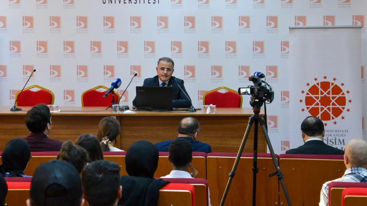 Bilecik'te Şeyh Edebali Üniversitesi Kariyer Merkezi Koordinatörlüğü tarafından organize edilen Siyaset ve Kamu Yönetimi Bölümü'nün de katkı sağladığı seminerde İletişim Başkanlığı Bursa Bölge Müdürü Ali Fuad Gölbaşı, Cumhurbaşkanı Recep Tayyip Erdoğan'ın "Türkiye Yüzyılı" vizyonunun iletişim alanındaki yansımalarını anlattı.BİLECİK (İGFA) - Türkiye Cumhuriyeti İletişim Başkanlığı Bursa Bölge Müdürü Ali Fuad Gölbaşı, Bilecik Şeyh Edebali Üniversitesi’nde "Türkiye Yüzyılı Vizyonuyla Kariyer Gelişiminde İletişim ve Dezenformasyonla Mücadele" başlıklı seminer verdi.