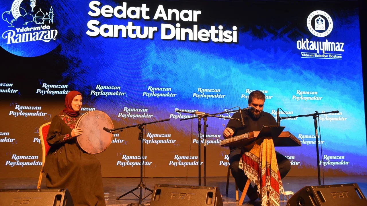 ‘Ramazan Birlikte Güzel’ sloganıyla kültür ve sanat alanında usta isimleri vatandaşla buluşturan Yıldırım Belediyesi, Ünlü Santuri Sedat Anar’ı Yıldırım’da misafir etti. Barış Manço Kültür Merkezi’nde düzenlenen santur dinletisi ile gönüllere dokunan ünlü Santuri Sedat Anar, sevilen ilahileri Yıldırımlılar için icra etti.