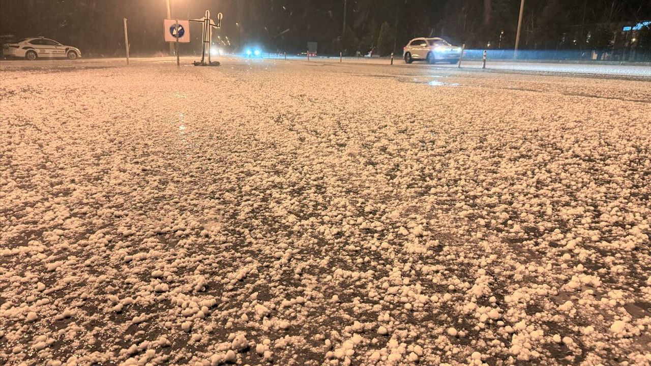 Kent merkezinde akşam saatlerinden itibaren görülen sağanak, yerini doluya bıraktı.