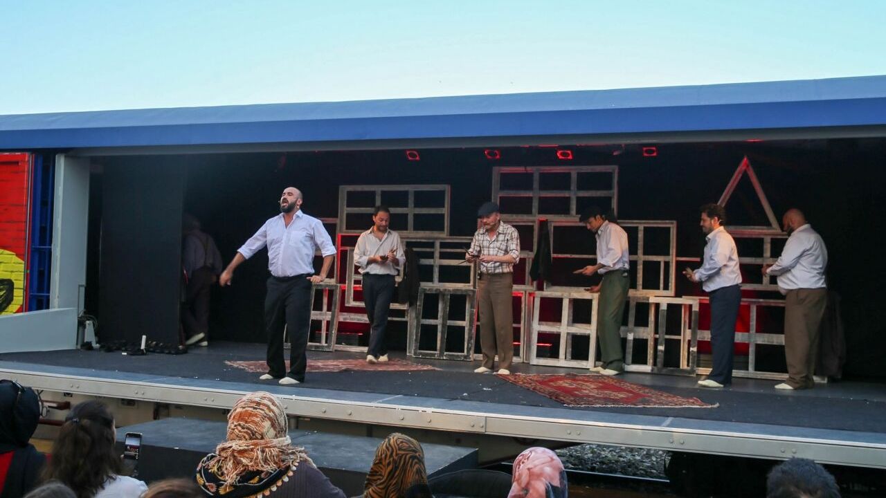 Burada trenin bir vagonunda oluşturulan sahnede "Misafir" adlı tiyatro oyunu oynandı.