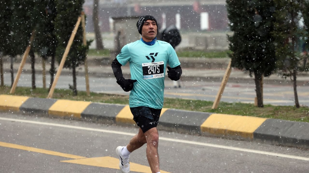 Maratonun başladığı anlarda etkisini gösteren kar yağışı renkli görüntüler oluşturdu. Beyaza bürünen güzergahta koşan bazı sporcuların, kardan korunabilmek için yanlarında bulunan poşet ve giysileri kullandıkları görüldü.