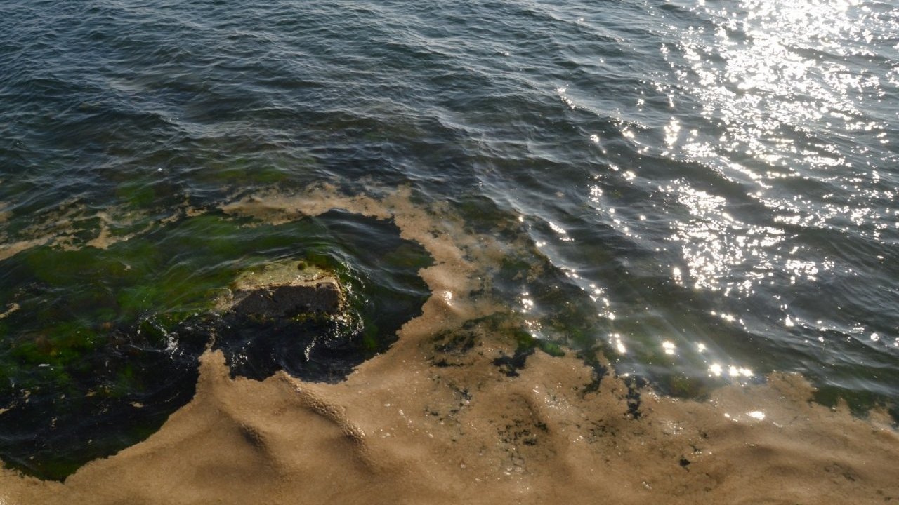 Sahildeki müsilaj nedeniyle su yüzeyinde köpüksü tabaka oluştu.