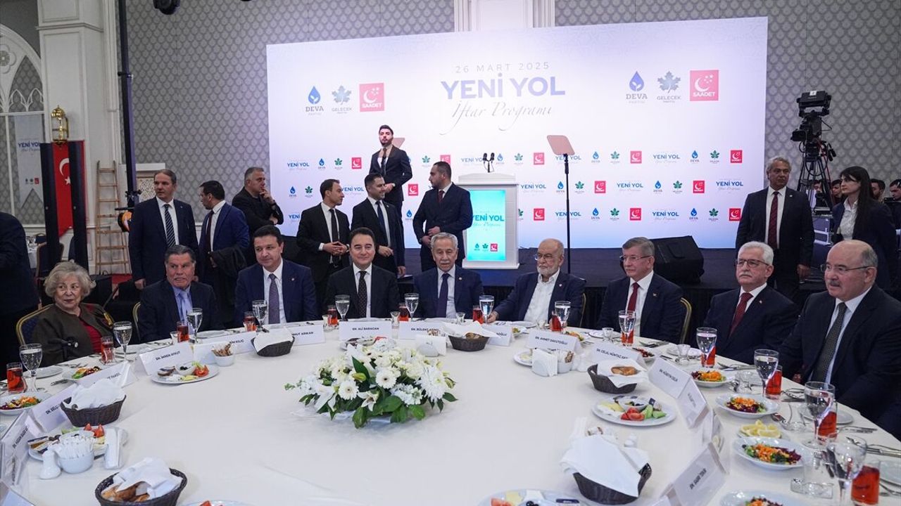 ANKARA (AA) - DEVA, Gelecek ve Saadet partilerinin kurduğu Yeni Yol Partisi'nin iftar programı, DEVA Partisi Genel Başkanı Ali Babacan, Gelecek Partisi Genel Başkanı Ahmet Davutoğlu ve Saadet Partisi Genel Başkanı Mahmut Arıkan'ın katılımıyla Ankara'da gerçekleştirildi.